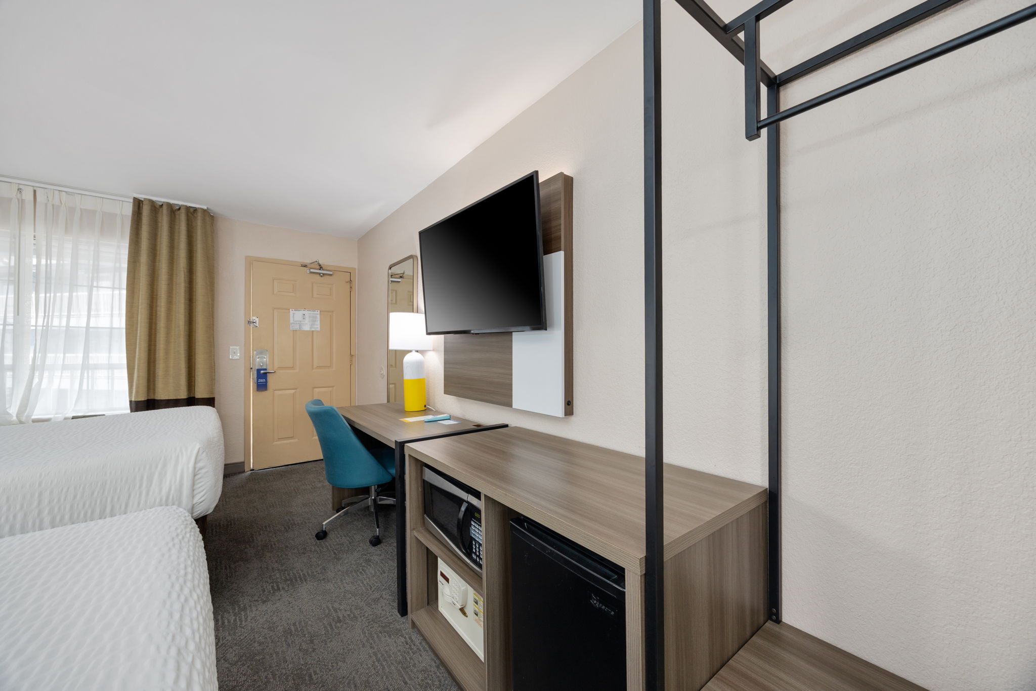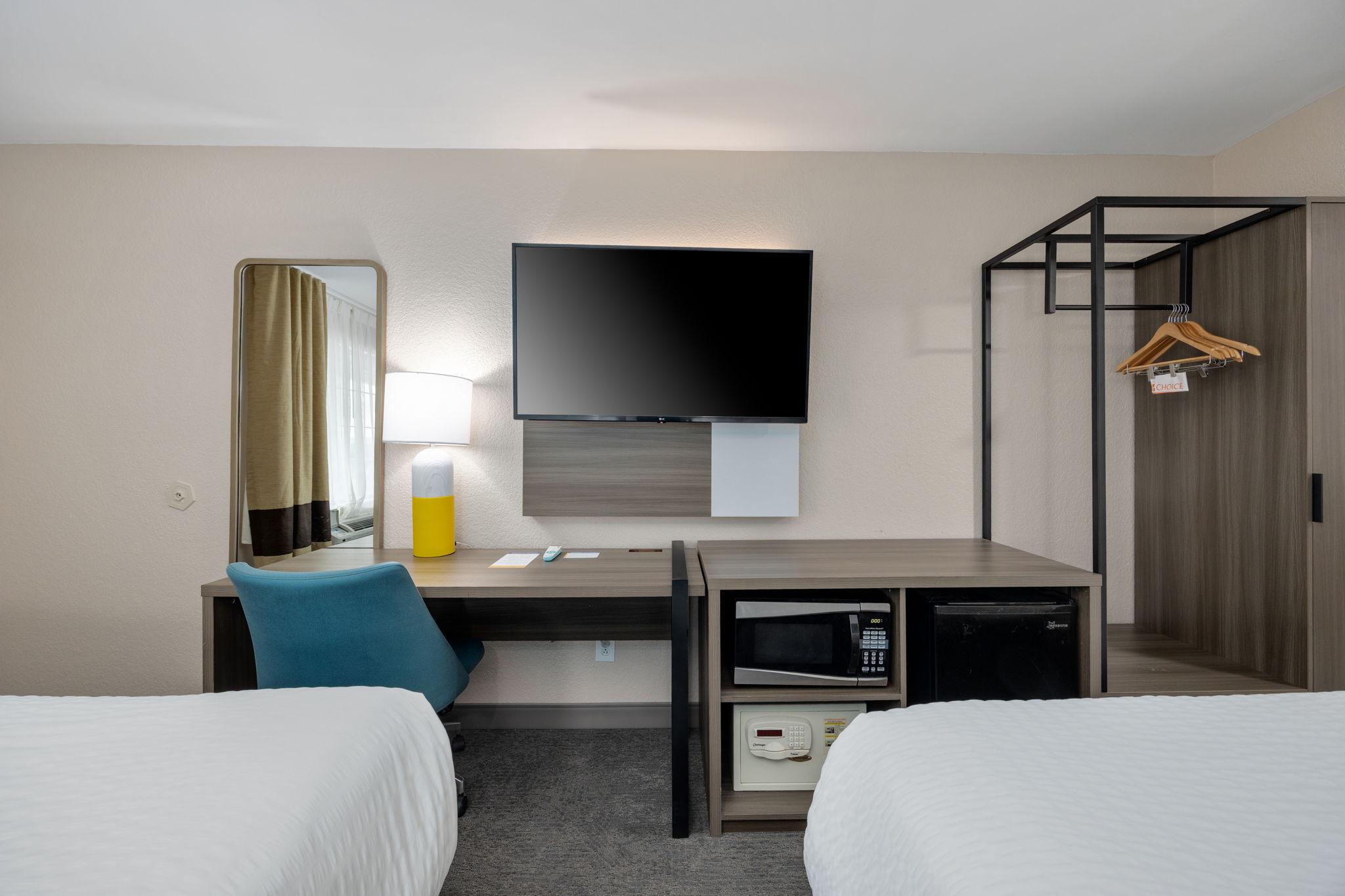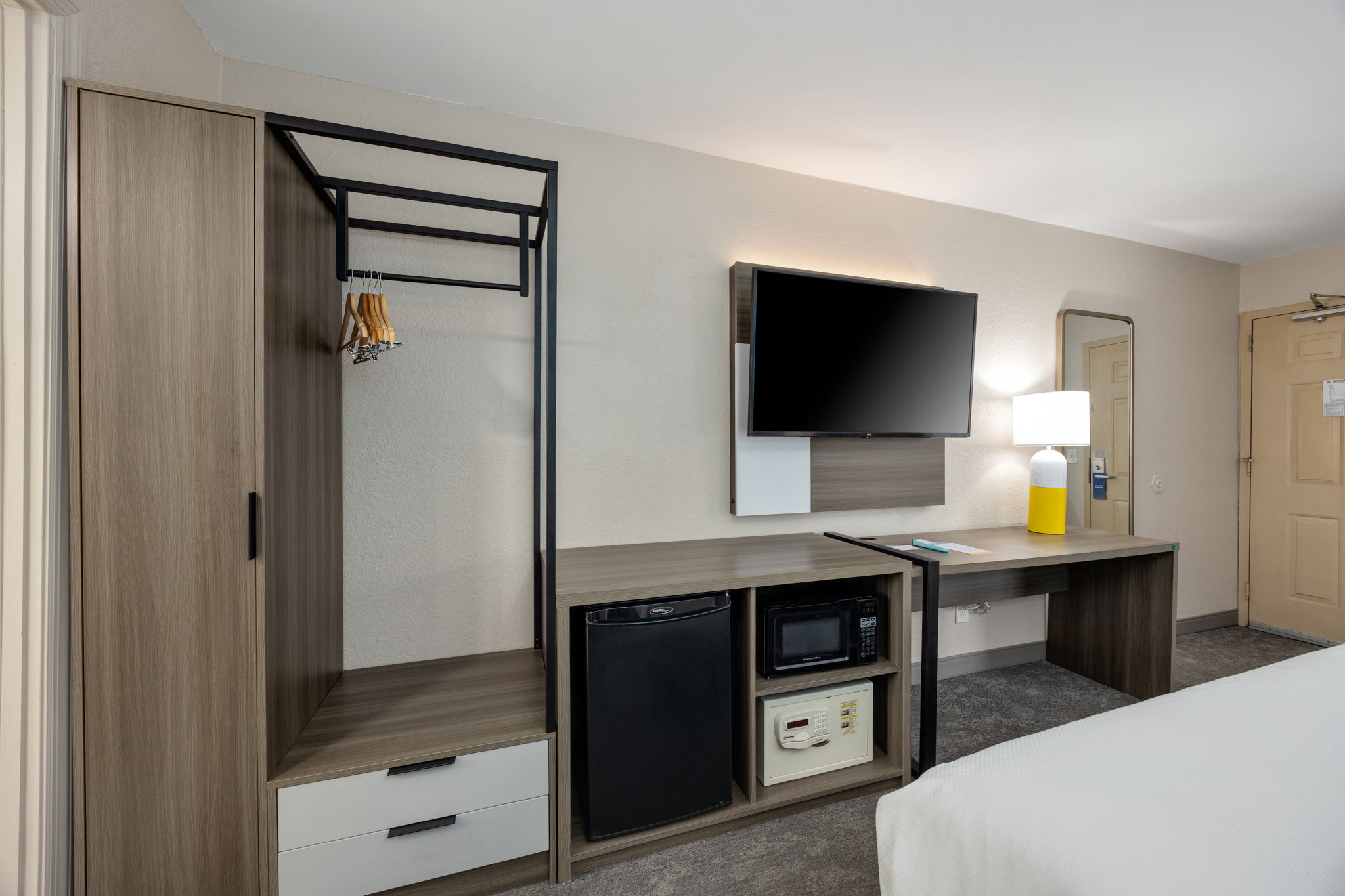 Take a closer look and you’ll discover our spacious rooms are designed with your comfort in mind. Additionally, you’ll see a bright and airy breakfast room and a variety of room options perfect for solo travelers, couples, or a family traveling on vacation. Imagine waking up after a restful night’s sleep, getting ready for the day in our spacious bathrooms, or kicking back and relaxing while watching a show on the TV. Walk around with your favorite four-legged companion by your side or venture down to our sparkling outdoor pool picture-perfect for a refreshing afternoon dip. You’ll find all the comforts of home while staying with us!